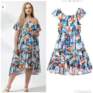 NWT 89th + Madison Tropical Print Off The Shoulder Dress Sz-3X
