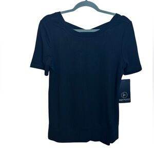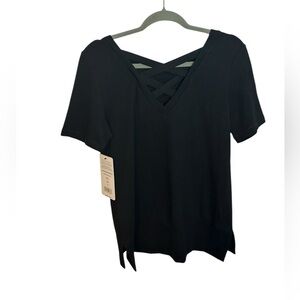 Brand new with tags. Super cute black short sleeve criss-cross back active tee. Really cute and flattering. WOMENS size medium.