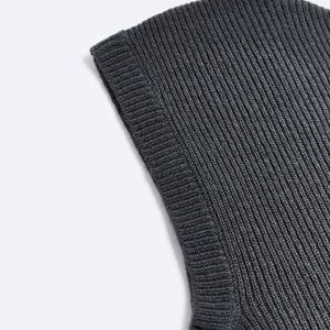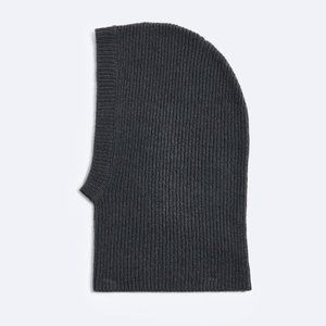 Balaclava made with 90% wool and 10% cashmere. Rib trim.