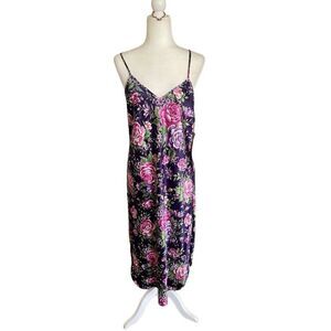 Vintage retro 90s new with tags purple floral rose, maxi nightgown, lingerie, slip, dress, sexy cute Kawaii