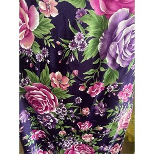 Excellent condition new with tags. Deep violet maxi dress with floral design all over it. A very feminine romantic design. Lightweight polyester material.