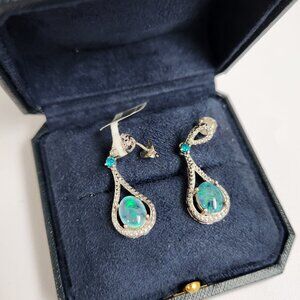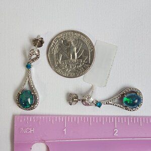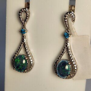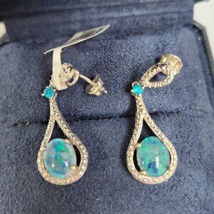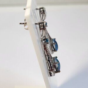 NWT 925 Natural Blue Ridge Opal Triplet & Apatite Art Deco Style Stud Earrings