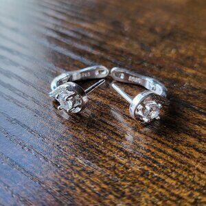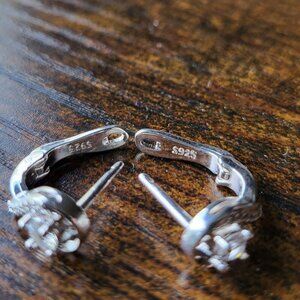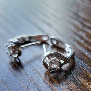 NWT 925 STERLING SILVER ROUND CUBIC ZIRCONIA HOOP EARRINGS