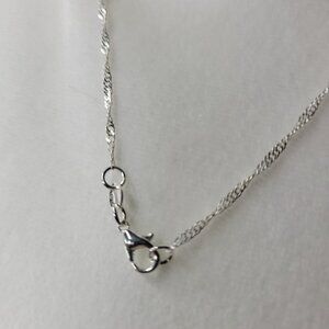 Delicate and dainty, beautiful and sparkly, this white silver plated (925 sterling silver plating) is whisper thin (1.5mm) and 20 inches in length, but so glimmery (is that a word?). We love it. Lobster clasp closure. Same day shipping from Texas!