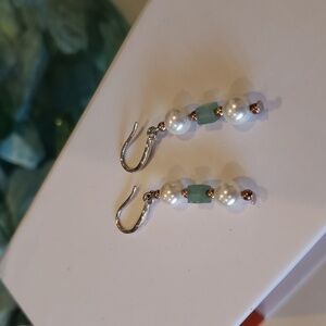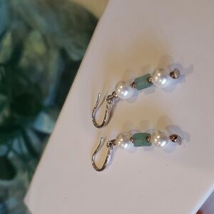 NWT 925 Sterling Silver JADE PEARLS DROP DANGLE EARRINGS 1" Authentic