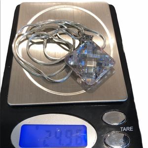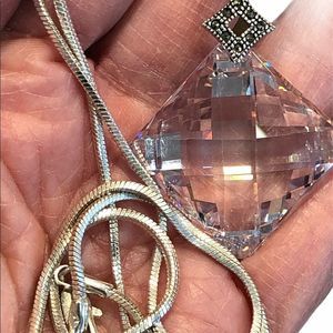 NWT 926 Heavy box chain weighing in over 29 g the enhancer is a laser cut crystal you can see all the rainbows through it and on top of the Crystal is a small little diamond of they look like marcasites now you can change this enhancer off this chain if you have other enhancers it’s absolutely breathtaking