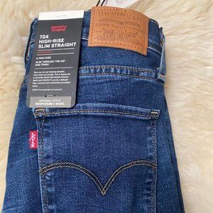The Levi's 724 in Dark Indigo Worn in features Levi’S® Sculpt Fabrication With Hypersoft for enhanced comfort with supportive stretch, making these one of Levi's softest jeans ever.