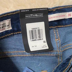 NWT $98 LEVI'S Women W 26" L 32" 726 High-Rise Slim Straight Hypersoft Raw Hem