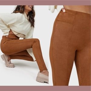 NWT $98 Spanx [ SP Small-Petite ] Faux Suede Leggings in Rich Caramel
