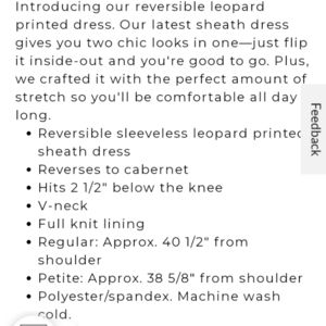 NWT $98 WHBM Leopard Reversable Deep Purple Dress Spandex Blend Sheath S