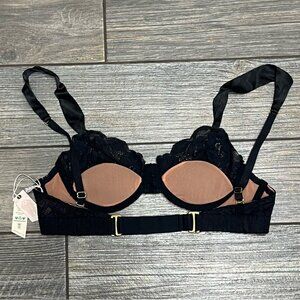 NWT $98 We Are HAH X Free People Bra 30-38D After Hours Black Lace Satin Push-up