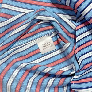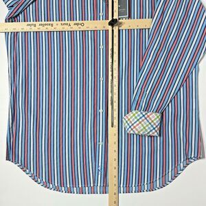NWT $99 Tailor Byrd LS Button Down Shirt Blue Pink Stripe Flip Cuff Men’s Size L
