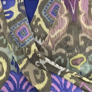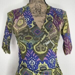 NWT $99 Weston Wear Green Multicolor Ikat Boho Patterned Mesh Top Women’s Small