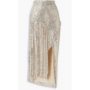 NWT MERYLL ROGGE $990 Asymmetric sequined tulle maxi skirt US size 2 FR size 34 SOLD OUT! Color: Silver and Gold