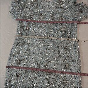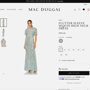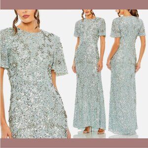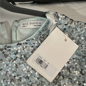 NWT $998 Mac Duggal [ 14 ] Flutter Sleeve Sequin High Neck Gown French Blue Q672