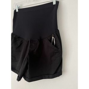 NWT A Glow Black Canvas Over The Belly Cuffed Maternity Chino Shorts. Stretchy supportive wide waistband with four pocket design.