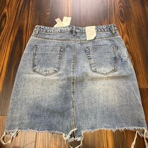 NWT A Loves A Denim Mini Skirt Frayed Hem Size 32