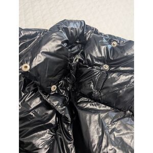 Stay warm and stylish with this sleek black puffer jacket by A New Day™. Designed for modern comfort with water resistance and sustainable materials, this short, relaxed-fit coat features thoughtful details like full side zippers, adjustable wrists, and a stand-up collar with snap buttons for added protection against the elements. New with tags and ready for layering season!