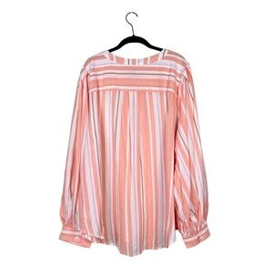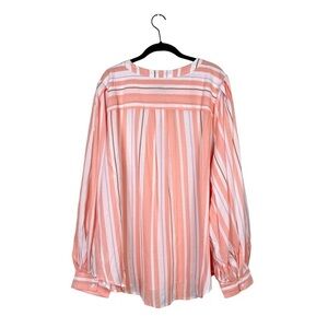 NWT A New Day Coral Striped Top Long Balloon Sleeves Button Front Lightweight 2X