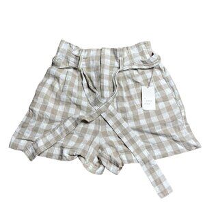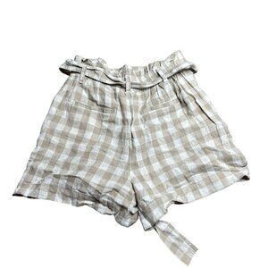 A New Day Linen Blend Gingham Shorts – Size M, Beige Checkered High Waist NWT