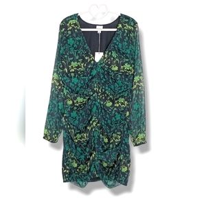 NWT A New Day Long Sleeve Ruched Front Bodycon Dress in Green Ombre Floral