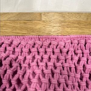 Chic and stylish pink knitted clutch, perfect for any occasion. Add a pop of color to your outfit with this elegant accessory.