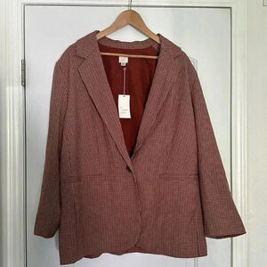 NWT A New Day Red Oversized Perfect Plaid Fall Blazer Jacket Size XXL
