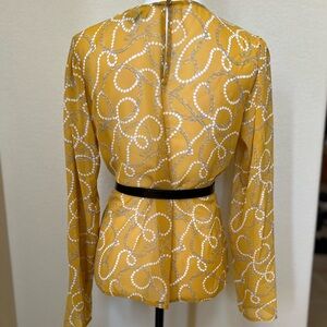 Gorgeous A New Day mustard print semi-sheer blouse still new with tags! Makes a great career wardrobe staple.