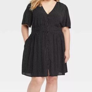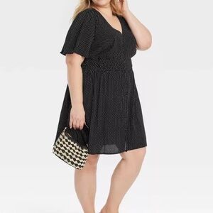 NWT A New Day Short Flutter Sleeve Polka Dot Crepe Mini Dress with Pockets 4X