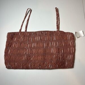 ✨NWT A New Day Small cropped Smocked Top brown cream adjustable removable straps