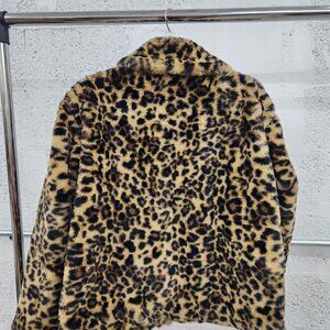 NWT A New Day Women's Faux Fur Leopard Print Zip Jacket Small