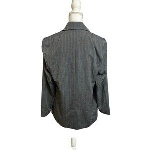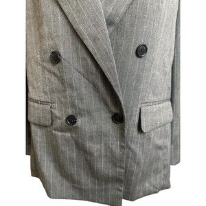 Brand new with tags A New Day Women's M Double Breasted Blazer Grey Stripe $40 retail tags attached. Lined, lightly padded at shoulders. Stored in a smoke-free environment. Material is 64% recycled polyester 34% rayon 2% spandex blend.