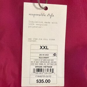 NWT A New Day Women’s Pink Hooded Insulated Jacket Size XXL Water Resistant
