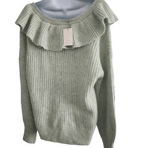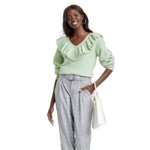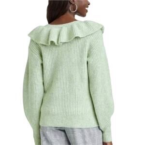 NWT A New Day Women's V-Neck Ruffle Cozy Pullover Sweater Mint Green Size XL