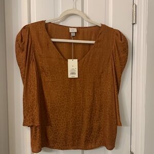 NWT A New Day animal print v-neck top puff sleeves Medium rust color