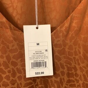 New with rags Target A New Day animal print Medium top polyester v neck puff sleeves 20” pit to pit 23 long pretty rust color with animal print tone on tone