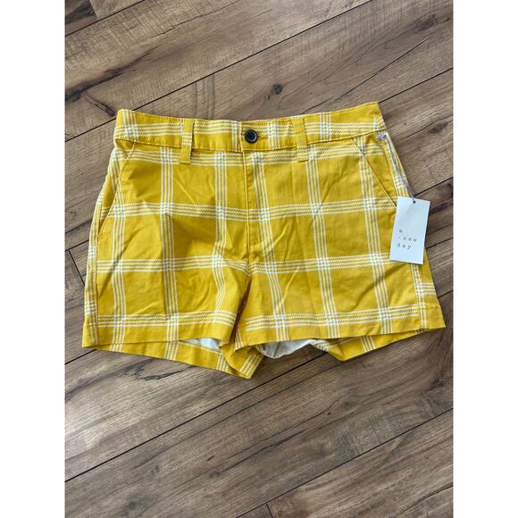 New with tags A New Day size 2 yellow and white plaid shorts. Waist is 14” across and inseam is 3”. Rise is 9”.