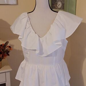NWT A New Day White Ruffled Dress Coastal Cowgirl, Soft Girl, Tomato Girl