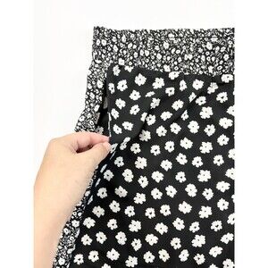 NWT A. Parker Floral Wide Leg Pull-On Pants Black Resort Breezy Lightweight, L
