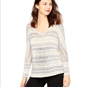 NWT A Pea In The Pod Gray / Cream Striped Maternity V Neck Sweater