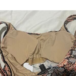 This square neck has slight side touching. 80% nylon, 20% spandex. Padded, removable cups. Shelf bra. New with tags. Retails for $98.