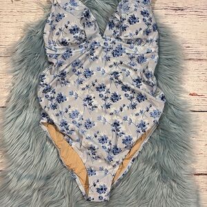 New with tags A Pea in the Pod Maternity Floral Blue One Piece Swimsuit