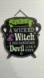 NWT- A Wicked Witch & Her Handsome Little Devil Live Here Wooden Cauldron Sign