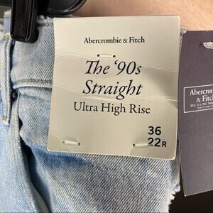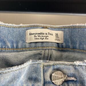 NWT ABERCROMBIE & FITCH 90’s Straight Ultra High Rise Jeans Distressed 36 22