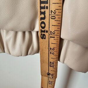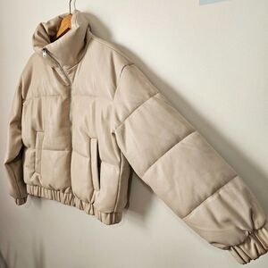 NWT ABERCROMBIE & FITCH BONE / CREAM PUFFER JACKET VEGAN LEATHER SIZE MED WMNS