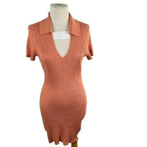 NWT ABERCROMBIE & FITCH V Orange Neck Ribbed Mini Dress (S)