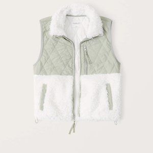 NWT ABERCROMBIE & fitch Cropped Two-Tone Sherpa Vest Jacket