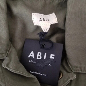 New with Tags ABLE The Military Jacket in Lucia wash. A great classic green utility cargo jacket! Snap front closure.