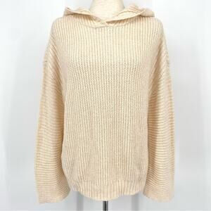 NWT ABOUND Cable Knit Hoodie Sweater Cream Size Medium Slit Back Hem Cozy Warm