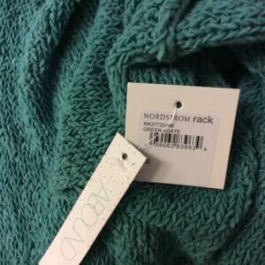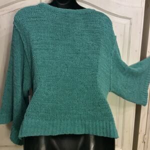 BRAND NEW WITH TAGS FROM ABOUND AT NORDSTROM - BEAUTIFUL SHADE OF TURQUOISE (CALLED "AGATE GREEN") IN A COTTON BLEND BELLSLEEVE KNIT SWEATER. SIZE XS BUT RUNS VERY LOOSE/LARGE - PLEASE GO BY MEASUREMENTS IN PHOTOS.